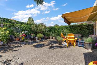 OPEN HOUSE - Sun Oct. 12 - 1- 3:00pm - One-level living at its finest in the heart of sought-after Polo Park! This beautifully maintained & tastefully updated 2 bedrooms plus den, 2 bathroom rancher offers 1,610 square feet of thoughtfully designed living space. Featuring hardwood floors, French doors, a cozy gas fireplace & a central interior atrium that fills the home with natural light. The kitchen has been stylishly updated in 2024 and includes a charming breakfast nook, perfect for casual meals. Other highlights include air conditioning, an efficient sprinkler system, two beautifully renovated bathrooms, and a double garage. Step outside to an easy-care yard with a private patio and retractable awning—ideal for relaxing or entertaining. Located in a quiet, semi-rural area of Central Saanich, yet just minutes to shops, transit, and all amenities in Saanichton. A perfect home for downsizers or retirees looking for comfort, quality & convenience in a peaceful community.