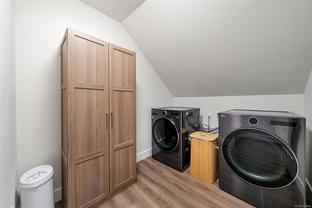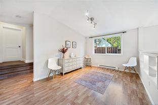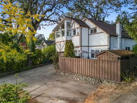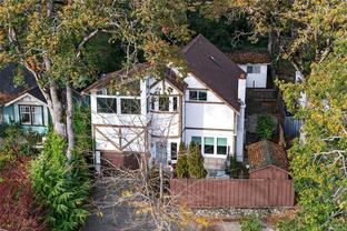 A rare blend of convenience, green space, and character. This 5-bedroom + office/den, 2-bath home (option for a 3rd bath) offers 2,784 sq.ft. of flexible living, including a second primary on the main with ensuite rough-in. A large, bright kitchen flows to a generous dining area. The upper floor was fully renovated in 2022 including a custom main bath, flooring, laundry and walk-in closet for primary. The upper floor facing South enjoys mountain & water views. Outdoors features private front and back patios on a mature, treed lot. Ample storage with 3 sheds (with power) + garage built-ins. Central yet quiet—steps to the Galloping Goose & E&N Rail Trail for easy commuting to Downtown, Central Saanich & Langford. Close to Marigold, Knockan Hill, Hyacinth & Welland Legacy parks and in the Marigold • Colquitz • Spectrum catchment. The new 30 km/h Burnside speed limit adds to the calm, friendly feel. An exceptionally convenient location with true character.