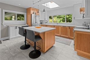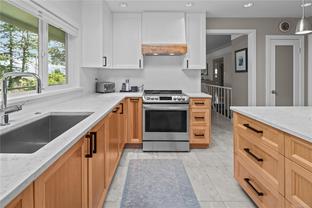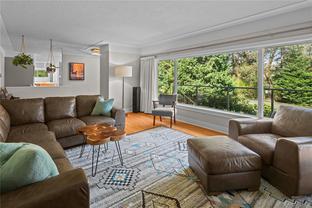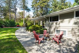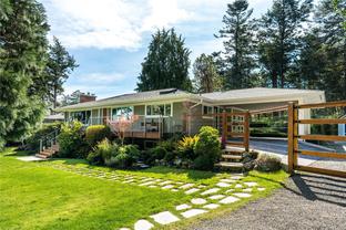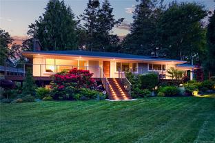 Move in for September! Tucked away on a quiet no-through road in Ten Mile Point, this beautifully renovated 1950s home sits on an expansive 11,000+ sq ft lot, just steps to the ocean and adjacent to Konukson and Phyllis Parks. Thoughtfully updated throughout, it features a custom kitchen, hardwood floors, fir doors, energy efficient windows, 300 amp service, and a new furnace and heat pump. The main level offers a bright, open layout with a gas fireplace, forest views, and a natural flow connecting the kitchen, dining, and living areas. The spacious primary bedroom, two additional bedrooms, and a stylish full bath complete the main floor. Downstairs includes a large laundry room, an additional bedroom with ensuite, and a brand new one bedroom legal suite with its own entrance. The fully fenced backyard is a landscaped retreat with raised garden beds, curated plantings, and a large cedar deck with ocean glimpses. A rare offering in a prime location near beaches, trails, schools, and Cadboro Bay Village.