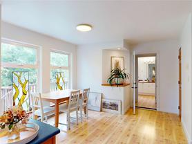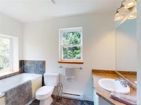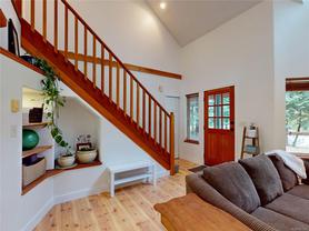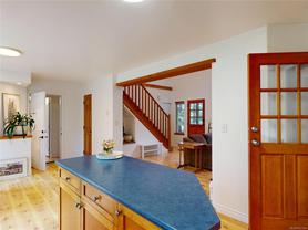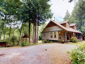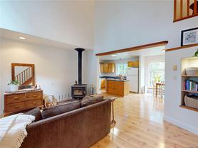 This home is the epitome of Vancouver Island living where a little West Coast cool meets Cape Cod charm with a warm, inviting exterior and an interior perfectly set on a generous .37-acre lot backing onto lush parkland teeming with birds and wildlife. A classic covered verandah welcomes you, and the glass-paneled fir door fills the entry with light, leading into this 3-bed, 2-bath home. The spacious living room boasts vaulted ceilings and a cozy wood stove, open to the gorgeous country kitchen with island, ample cabinetry, and serene views of the greenbelt—right beside the bright dining room and mudroom. The expansive rear yard blends seamlessly with nature beyond. Primary suite features a window seat and ensuite with jetted tub and separate shower, plus a 3rd BR upstairs. Private front, sanctuary rear—and yes, there’s a workshop for the handyman in the crawl space.
