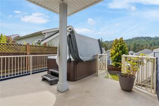 Fabulous family home—over 2800sqft of custom design, space, and comfort.The main floor offers a roomy kitchen with granite counters, stainless steel appliances, and an island with seating for six—ideal for family meals and entertaining.The dining area opens to a deck with hot tub, built-in BBQ area, and views of the backyard steps below.The primary suite features a fireplace, walk-in closet, and ensuite.The second bedroom has been transformed to a bright home office with its own entrance—perfect for remote work or simply turn back in to a bedroom.A full bath and laundry room leading to the garage complete the main level.Downstairs has two more bedrooms, full bathroom, storage, flex space/gym, and a large rec room with separate entrance opening to the private covered patio and back yard.Double garage located off a quiet rear lane with an oversized driveway for plenty of parking.Built Green with Geo-Exchange system.Walk to YMCA, Langford Lake, parks, schools, and recreation!