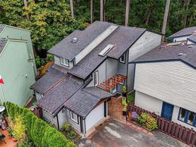 Welcome to this lovely detached home on a quiet street in View Royal backing onto Portage Park and offering serene forest views from every room. Move in ready with hardwood floors throughout, updated trim, windows, front door, exterior and both bathrooms. The main level features a large sunken living room, separate dining area, functional kitchen, 2pce bathroom and laundry room/pantry leading to an oversized single car garage with extra storage. Upstairs has a beautifully updated bathroom, three bedrooms including an adorable kids loft bedroom or office, a spacious primary with his and hers closets as well as a guest bedroom. Enjoy the large private deck with built-in seating, overlooking a fully fenced backyard, just perfect for entertaining. All of this is just steps to a tennis court, nature trails, beaches, shopping, restaurants & just a 10 min. drive to Victoria or the Westshore. The location doesn't get any better so book your private showing today!