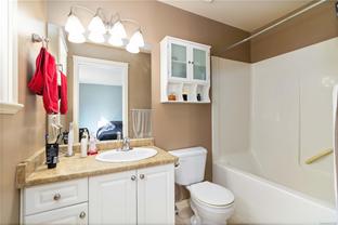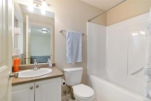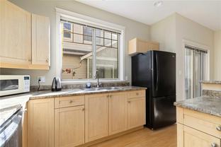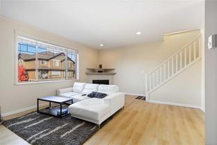 OPEN HOUSE Oct 18 Sat 11-1PM and Oct 19 Sun 12-2PM. Situated in the heart of thriving Langford, this spacious townhome offers 4 bedrooms, 4 bathrooms, and a single garage. Brand new carpets and full interior paint (Oct 4th) make it move-in ready! The bright entry level features a large bedroom or hobby room with a full bath and access to a spacious wooden deck. The main floor boasts 9' ceilings, a generous living room with west-facing window and electric fireplace, a dining area with balcony access, and a bright kitchen with plenty of cupboard and counter space plus a convenient pass bar with room for stools. Upstairs are 3 good-sized bedrooms, a full laundry room, and a primary suite with full ensuite. Ideally located between downtown Langford and Westshore Town Centre, this well-maintained home offers a walk score of 73 with shopping, dining, and transit nearby.