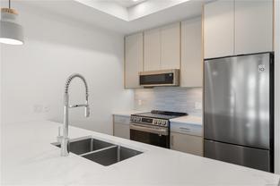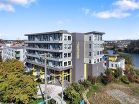 Welcome to waterfront living in this sun-filled home, located in the final phase of the Railyards community in Vic West. This two-bedroom, two-bathroom unit offers a spacious floor plan with luxury finishes. The open-concept layout features a thoughtful split-bedroom design, floor-to-ceiling windows, and a modern kitchen complete with stainless steel appliances, quartz countertops, and a sizeable patio. This home includes in-suite laundry, separate storage, bike storage, and secure underground parking. With no size restrictions on pets, this is a truly welcoming space for all members of the family. Designed for an active lifestyle, the Railyards is situated directly on the Galloping Goose Trail, close to the Selkirk Trestle and Banfield Park. Additionally, it's just a short walk, paddle board, or bike ride to downtown Victoria, don't miss your opportunity to be a part of this vibrant waterfront community.