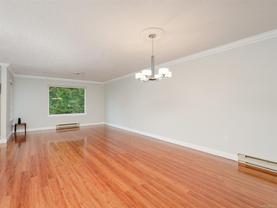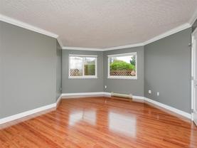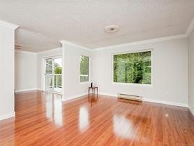 Welcome to Oak Glen Estates, a friendly and affordable community in the heart of Saanich. This bright and spacious end-unit townhome offers over 2,200 sqft across two levels, with 3 bedrooms and 3 bathrooms. The main level features a generous living and dining area, laundry room, and two bedrooms, including a well-appointed primary suite with walk-in closet. The lower level offers excellent flexibility with a large family room, guest bedroom, and an enormous storage room. Updates throughout include gleaming wood floors, newer vinyl windows, and some updated appliances. Step outside to enjoy the beautifully landscaped, private rear yard with a ground-level patio and a deck surrounded by cherry blossoms. Backing onto the peaceful Saanich Natural Park, it’s a perfect retreat for nature lovers and dog owners alike. Oak Glen Estates offers exceptional amenities including a clubhouse, guest suite, library, fitness room, and games area, all within a well-managed and welcoming complex.