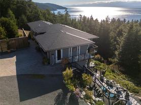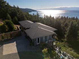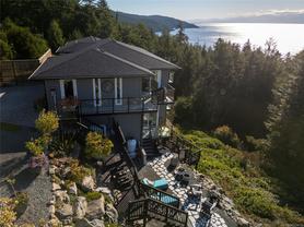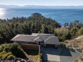 Step into Luxury with this custom-built Ocean view residence in the coveted Silver Spray district of East Sooke. This 4-bed, 5-bath masterpiece was created with Designer aesthetics and built with enduring, easy to maintain materials. Ask for the building feature list… you will be amazed! Here we have a dual-purpose floor plan with a Rancher feeling on top, and a flexible intergenerational or art studio/recreation area, walk-out level below. Meticulously crafted in 2019, the property underwent a 2022 $300K Urbana kitchen redesign featuring premium Thermador, Dacor, and Sub-Zero appliances. The main level showcases new white oak floors, a stunning primary bedroom with an ensuite bathroom and walk-in closet, and elegant living and dining spaces. The lower level is an entertainment paradise with a family room, 2nd primary suite, 2 add’l bedrooms, 2nd laundry, and a Theatre room that can easily be a second kitchen. Imagine living in paradise inside and out. Here you truly can have it all!