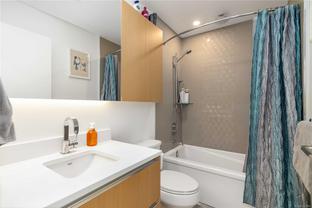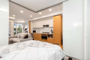 This one-bedroom residence in the award-winning Black & White by Abstract Developments offers exceptional urban living with a 96 walk score and endless dining and boutique options - including Discovery Coffee at The Breakfast Shop downstairs, and Cook Street Village only five minutes away. The layout features a spacious bedroom with a large closet and sliding privacy doors that can be opened to expand the living area or closed for separation. This building is exceptionally pet-friendly allowing 2 DOGS, 2 CATS, or 1 OF EACH plus a common area pet wash station. Inside you’ll find high-end finishes like a paneled Fisher & Paykel fridge, quartz countertops, a gas cook top and Fulgor Milano oven, engineered oak flooring, and a spa-inspired bathroom with heated tile floors, ambient lighting and rain shower. Amenities include EV charging, bike storage, and a beautifully designed shared patio with BBQ and fire pit. This is your opportunity to own in one of Victoria’s most celebrated buildings.