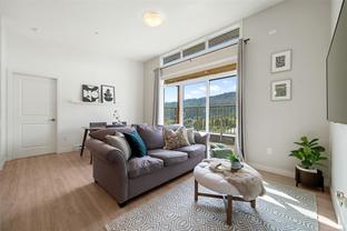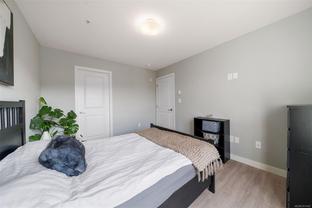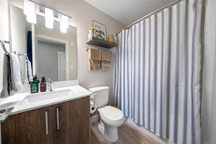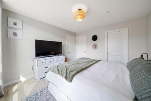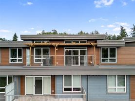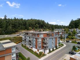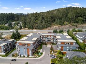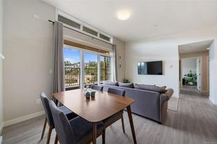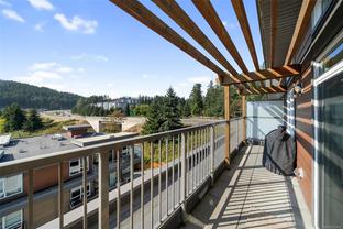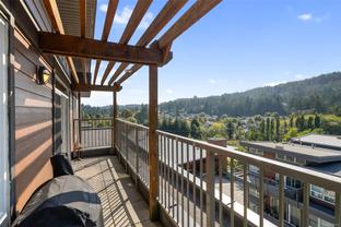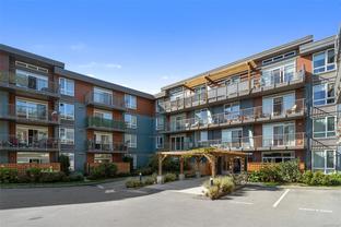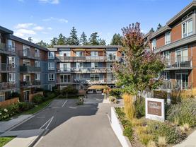 Open House Saturday Oct 18, 11AM-1PM, Sunday Oct 19, 12PM-2PM! Top-floor west-facing 2 bed + den, 2 bath condo at Thetis Lakeside! Offering 1,055 sq. ft. of bright living space, this home features soaring 9’ vaulted ceilings that go up to over 11' with extra windows for natural light, plus an oversized deck with views to the Olympic Mountains. The open concept layout includes a modern kitchen with quartz countertops & stainless appliances, flowing to a spacious living/dining area. The primary bedroom boasts a large walk-in closet & space for an office/reading nook, while the 2nd bedroom also has a generous walk-in closet. European vinyl plank flooring adds style throughout. Extras include 2 storage lockers & 1 parking stall. Pet-friendly with large dogs allowed (no weight restrictions)! Building offers 2 elevators, dog area, bike storage, e-car spaces & ample visitor parking. Steps to Thetis Lake Park & the Galloping Goose, and minutes to shopping, dining & recreation. Rentals allowed!