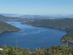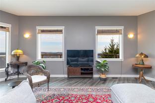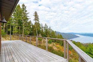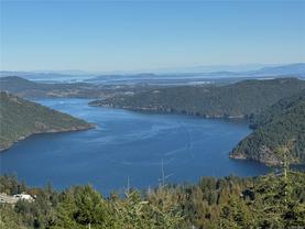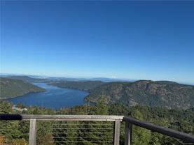Escape to your own slice of paradise in this South facing 5.9 acre mountain top retreat located in Goldstream Heights. This modern 3-bed/2-bath rancher with a detached 1-bed carriage house & 1,225 sf triple garage offers stunning panoramic views of Finlayson Arm, Mt. Baker, the Gulf & San Juan Islands & downtown Victoria. Designed to showcase the views from nearly every room, the home features 10' ceilings, oversized windows, commercial grade patio doors, a gourmet kitchen, luxurious primary bedroom with spa-inspired bathroom. Enjoy seamless indoor-outdoor living & soak in the views on the 600 sf wraparound deck. The carriage home is perfect for guests or rental income. Amazing triple car garage ideal for car enthusiasts. Highlights include a ducted heat pump, state-of-the-art fire suppression system & low-maintenance landscaping. Located on a private cul-de-sac with direct access to Sooke Hills Wilderness Trail, Wrigglesworth & Shawnigan Lakes & 20 minutes to Langford or Mill Bay.