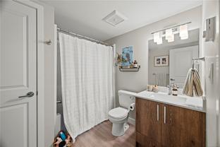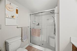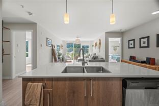 Bright and spacious 2 bed, 2 bath condo just steps from Thetis Lake and some of the best trails and recreation on the island! This 950+ sq.ft. home features a functional split-bedroom layout and south-facing exposure for tons of natural light. The large kitchen includes quartz counters, stainless steel appliances, and ample workspace. The living room opens to a generous, private balcony — no neighbours beside or across — perfect for relaxing or BBQing. The primary bedroom features a walk-through closet and ensuite, with the second bedroom and bath on the opposite side. Includes a large storage room across the hall, 1 parking stall, and lots of visitor parking. Only 9 units in the building with just two other owners on your floor. On the Galloping Goose and E&N bike paths and walking distance to The Nest Café and Six Mile Pub. Building amenities include bike/kayak storage and a fenced dog run. Pet-friendly with no size restrictions!