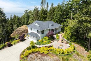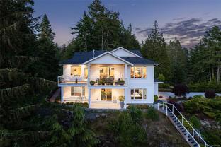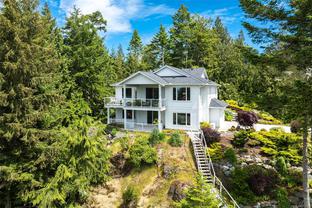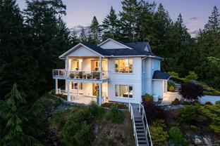 BREATHTAKING OCEAN & OLYMPIC MTN VIEWS are equalled only by this custom, 2017 built, 4 bed, 3 bath, 2,735sf, executive home on a private (gated entry), beautifully treed & masterfully landscaped 2.35ac/102,366sf in Prestigious Silver Spray, the premier development in super natural East Sooke. Step thru the front door & your gaze will be drawn to stunning ocean & mtn views, fine finishing details & gleaming floors awash in light thru a profusion of picture windows. Gourmet kitchen w/quartz counters/island, stainless steel appls & walk-in pantry. Inline dining rm is perfect for family dinners. Living rm w/cozy propane fireplace opens to view balcony. Primary bed w/walk-in closet & opulent 5pc ensuite. 2nd bedroom, 2pc bath & laundry complete main lvl. Down: 2 more bedrooms, family rm opening to view patio, wet bar, 4pc bath & storage. Enjoy outdoor living w/over 1300sf of decking/patio (incl lower patio w/firepit), sports court, heat pump, dbl garage & lots of parking. Simply Perfection!