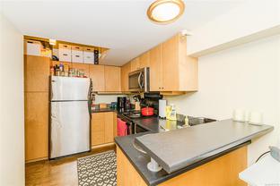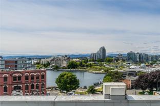 Welcome to The Leiser, a landmark brick building in the heart of Downtown Victoria. Originally built in 1896, this iconic structure was transformed in 2008, reimagined into stylish loft-style condos that beautifully fuse architectural character with contemporary finishes. The suite boasts nearly 14-foot ceilings adorned with a grand original window, framed in lovingly restored wood casings and meticulously restored brickwork. Inside, discover a chicly designed living space, in-suite laundry, and a modern kitchen with quartz countertops. Building amenities include bike storage, a separate storage locker, and a full rooftop patio offering breathtaking 360-degree ocean and city views. Just steps away from the stunning waterfront walkway, vibrant Oldtown, shops, restaurants, and attractions. This property invites you to embrace the walking and biking lifestyle while owning a piece of the city's rich history. Charming, convenient, and pets are welcome. Vacant and easy to show!