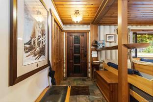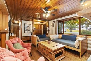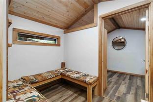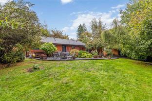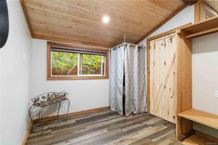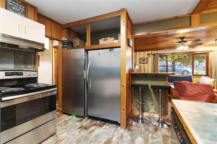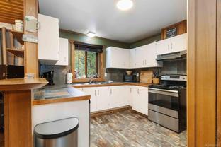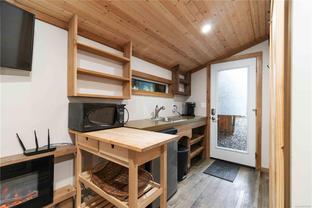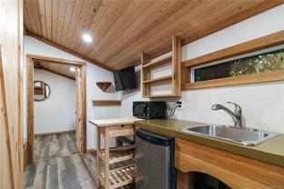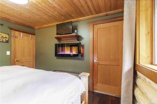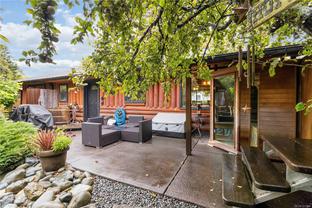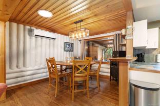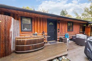 Welcome to this custom Scandinavian log home, a truly special 3-bedroom retreat where timeless craftsmanship meets modern comfort. Thoughtfully updated throughout, it features original hardwood floors, solid wood ceilings, and striking log detailing that create a warm and inviting atmosphere. Two electric fireplaces add cozy charm, and the heat pump ensures comfortable warmth throughout the home. The open layout makes everyday living effortless, extending naturally to a beautifully landscaped and fully fenced backyard with cedar fencing. Enjoy your own private oasis complete with a cedar sauna, cedar hot tub, tranquil pond, and mature fruit trees. The property is ideal for downsizers seeking single-level living with both space and character. A charming tiny cottage in the back offers extra room for guests, a studio, or a quiet hideaway, complete with its own fully fenced yard. This home captures the essence of relaxed West Coast living, ready for you to move in and enjoy.