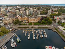 Welcome to The Shutters - where architectural excellence meets spa-like tranquillity. This 1-bed + den, 2-bath condo has a rare & private exterior front entrance, bringing a townhome feel to condo living. Surrounded by water, this unique unit has a patio that backs onto a serene pond, which offers a stunning view out of the floor-to-ceiling windows as well as plenty of room for outdoor dining and enjoyment. Inside, you'll find spacious and bright rooms, a modern kitchen, and luxe bathrooms. Overlooking the inner harbour, the building sits steps from the Songhees walkway, Galloping Goose trail, markets, restaurants, and downtown shopping. The resort-style amenities in this exclusive complex include an amazing outdoor pool, a gym, a hot tub, a sauna, a steam room, a guest suite, a lounge, a boardroom, guest parking, & kayak/bike storage. One designated parking stall & storage included. This is your opportunity to own a one-of-a-kind unit in this exceptionally renowned building!