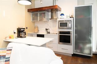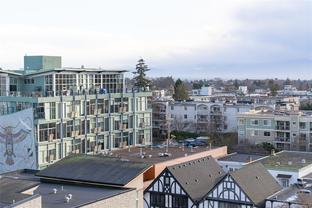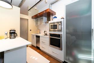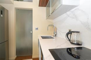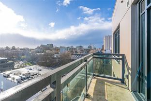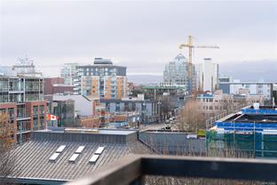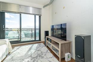 Savor breathtaking views of the Ocean and Olympic Mountains from your private balcony. This modern and stylish unit features engineered floors, quartz countertops, in-suite laundry, and sleek stainless steel appliances. Situated in the sought-after Jukebox building, a meticulously maintained concrete and steel structure, this home offers secure underground parking and a separate storage unit. Enjoy access to the fully equipped fitness center and a serene rooftop meditation garden, all while benefiting from low strata fees. Nestled in the vibrant Harris Green neighborhood, you'll be steps away from Victoria's Downtown Core, Inner Harbour, and an array of the city's finest restaurants and shops. Pet-friendly and rental-friendly, this property is perfect for homeowners and investors alike. Don’t miss the chance to call this exceptional unit your own!