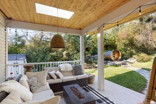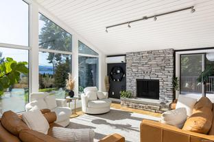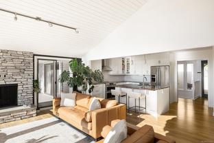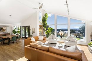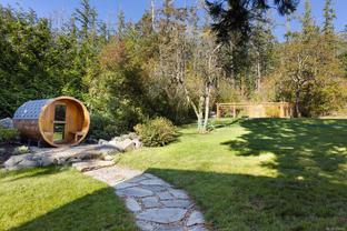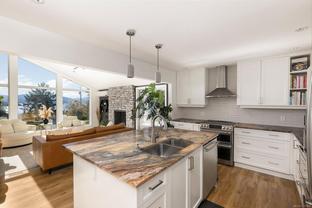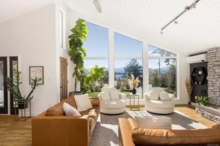 Stunning West Coast family home showcasing breathtaking west-facing ocean views and an exceptional outdoor lifestyle. Set on 1.05 acres in one of the Peninsula’s most desirable locations, this 4,266 sq ft, 5 bed/3 bath residence was tastefully renovated by Lida Homes. The bright, open-concept main level features 13-ft vaulted ceilings, a spacious kitchen with JennAir appliances and quartz counters, and French doors leading to an expansive sundeck with frameless glass railings. The primary suite offers a spa-inspired ensuite, loft office with ocean views, and access to a covered sundeck with hot tub, perfect for year-round enjoyment. Outdoor living shines with a new sauna, beautiful gardens, ponds, and vegetable beds across a sun-soaked south-facing backyard. Comfort is ensured year-round with a heat pump and A/C, while a lower-level rec room with kitchenette adds versatility. Steps to Deep Cove Winery, Chalet Restaurant, beaches, and trails — a true North Saanich Coastal Retreat blending luxury, nature, and design.