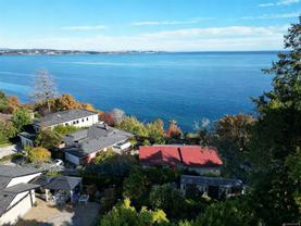 With nothing between your backyard and the Ocean, this home sees sunrises paint over Mount Baker; sunsets cast gold across the Strait of Juan de Fuca. Protected by surrounding coastal mountains that act as a natural windbreak, the micro-climate here stays remarkably temperate—mild winters, gentle breezes, and year-round greenery. This property features a 40-metre-long lot. Just a short walk to the Esquimalt Lagoon beach and the Arbutus Landing plaza. Also close to Royal Roads University, Hatley Castle, and vast parklands filled with forested trails, beaches, and wildlife. The small mountain and Perimeter Park & The Beachlands Park nearby offer scenic hikes and panoramic viewpoints right in your neighbourhood. The home includes a legal secondary suite, providing flexibility for multigenerational living, guest accommodation, or income potential while you enjoy this incredible setting or plan future improvements.