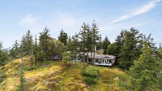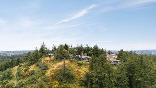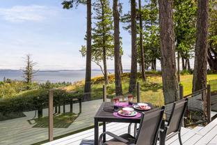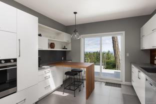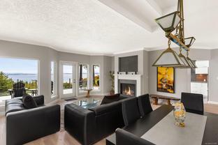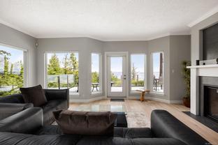 This stunning executive one-level corner townhome, located in a private enclave, offers captivating ocean views. Designed for easy, accessible living, it features a no-step entry from the front entrance and garage. The home includes two bedrooms, two full bathrooms, and a generously sized den that can serve as a home office, creative space, or additional bedroom. The bright, modern kitchen, equipped with a gas cooktop, built-in wall oven, stainless steel appliances, and an eat-in area, is thoughtfully designed for everyday living. The kitchen and separate living room open directly onto a generous deck, perfectly positioned to capture the morning sun and showcase panoramic views of Haro Strait and the San Juan Islands. The spacious primary suite also enjoys ocean views and features a spa-inspired five-piece ensuite and a walk-in closet with built-ins. Additional highlights include a double garage with built-in storage, a sink, and an EV charger, along with extensive renovations featuring new windows and updated plumbing, among other improvements. This home is conveniently located near Broadmead Village, offering access to beautiful parks and trails, including Elk/Beaver Lake Regional Park and Mount Douglas Park. Enjoy comfort, privacy, and coastal beauty in this sought-after community.