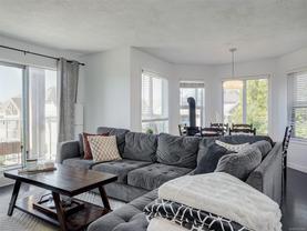 New Price! A Commuter’s Dream-Right off the Highway Unbeatable highway access means you’re downtown, at UVic, or on the road to the airport or ferry in minutes — perfect for professionals, students, or frequent travellers. Why rent when you can own? This top-floor corner condo offers sweeping mountain, ocean & city views—including the Parliament Buildings. Bright 2 bed/2 bath layout with eat-in kitchen, formal dining, spacious living room with gas fireplace & large windows. The primary suite includes full ensuite & stunning views; second bedroom is great for guests, roommates or study. Thoughtful updates—including flooring, kitchen, baths & in-suite laundry/storage—were completed several years ago and remain in excellent condition. Pet- & family-friendly building near Commonwealth Rec Centre, Broadmead Village, Elk/Beaver Lake & major transit. Direct access to both campuses makes this a smart long-term investment. Quick Possession Possible