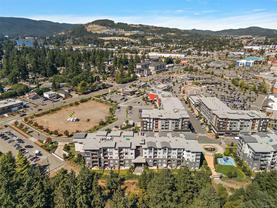 Welcome to Belmont Residences! This stunning 1,105 sq.ft. corner unit features 3 Bdrms/2 Bths that also includes 2 parking spots, such a rare find! The primary bdrm boasts a beautiful spa-inspired ensuite & walk-in closet. Every room has large windows that flood the space with natural light. The open-concept layout has a spacious gourmet kitchen with a large island, SS appl, gas cooktop, plenty of cupboard space & BBQ hookup on the patio. With no shared walls with the neighbours & the only joining wall is in a closet, this space feels very private. Other features: heat pump, in-suite laundry & dedicated storage. Building has a terraced patio w/BBQ, lounge w/firepit, kayak storage, pet grooming station, bike storage & access to the Belmont Club. Located just steps from Belmont Market, access to the Galloping Goose Trail & transit, this prime, walkable neighborhood offers an active urban lifestyle with vibrant local amenities & community spaces designed for connection & easy commuting!