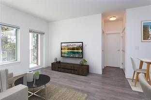 Welcome to The Coho and all that elevated living has to offer. This 2bd/2bth home is located at the back of the building, quiet & surrounded by greenery & trees. Enjoy sun-filled mornings & stay cooler on hotter days while relaxing on your large balcony. You will love the private layout with bedrooms & baths on opposite ends and an open living area between. The 9'ceilings plus glass window & door amplifies the sense of space. The generous master bedroom has a walk through closet that opens to a modern glass & tile ensuite. The 2nd bedroom matched in size also has access to a 4 pc bath. The contemporary kitchen includes double sink, quartz counters, tile backsplash, a new Fisher & Paykel fridge, wood cabinets and large seated island. Off the kitchen you will find a desk area & laundry with new washer & dryer. This unit is in prime condition - professionally cleaned and freshly painted throughout. 1 secure underground prkg & storage. Close to all amenities. Book your viewing today!