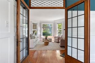 Step into this beautifully maintained Victorian character home, blending timeless charm with thoughtful modern updates. The main floor welcomes you with a bright and inviting living room, a separate dining room perfect for hosting dinner parties, and an updated kitchen. Upstairs, the spacious primary bedroom features a cozy gas fireplace and a beautiful updated bathroom. Two additional bedrooms provide ample space for family or guests, and the convenience of a brand-new laundry set has been added to this level. The basement offers excellent flexibility with an unfinished area that includes a half bathroom, a laundry space, and plenty of room for storage. Recent updates throughout the home include a new heat pump, refreshed bathrooms, and new front porch stairs. Outside, enjoy a private yard filled with beautiful cherry blossoms, fruit trees, and mature landscaping. A detached garage and a generous driveway provide ample parking, with the potential for a future garden suite.