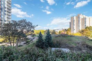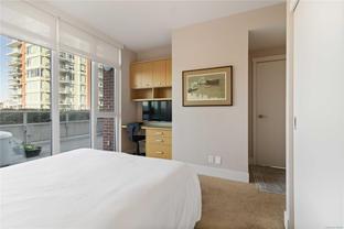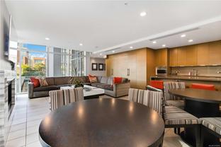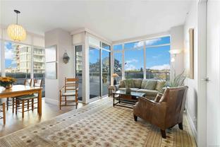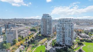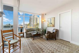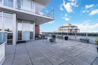 Discover one of the most exclusive homes at The Promontory, nestled within Bayview Place. This contemporary steel and concrete high-rise is situated in the vibrant heart of the Victoria West waterfront. This property has a unique and EXCLUSIVE 1,200 sq. ft. private terrace offering panoramic views of the inner and outer harbour, along with the Olympic Mountains — an ideal setting for hosting summer gatherings. Complete with a hot tub, outdoor fire pit, natural gas BBQ hook up and irrigation this stunning outdoor retreat overlooks lush greenery and southwest-facing vistas. Inside, you'll find a spacious primary bedroom with a sleek, modern ensuite, a second well-appointed bedroom and bathroom, and a bright, open-concept living and dining area highlighted by floor-to-ceiling windows. Premium finishes are featured throughout the home. This unbeatable location is just minutes from downtown by foot, bike, or bus, & close to parks, shops, the shoreline and new Victoria international Marina.