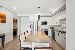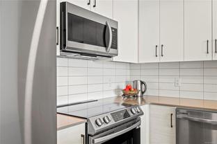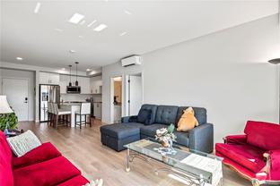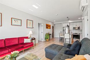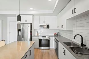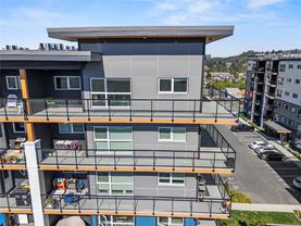 Top-floor, corner unit with one of the best layouts in the building. This 2-bedroom, 2-bathroom home features a spacious kitchen with a large island, quartz countertops, and plenty of room for cooking and entertaining. Bright, open living area with A/C, and bedrooms smartly separated for privacy. The highlight is the incredible wraparound deck—perfect for morning coffee, evening wine, or entertaining. Extras include a large in-suite laundry room, underground secure parking, and dedicated storage lockers. The building offers outstanding amenities: fitness centre, rooftop terrace, common lounge, a guest suite and bike storage. Move-in ready, this is a fantastic value in a sought-after Langford location near shops, Costco, cafes, trails, and schools. An ideal choice for first-time buyers, downsizers, or anyone wanting low-maintenance living with the comfort of modern construction and space to truly enjoy both indoors and out.