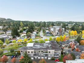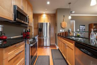 Welcome to The Lux, where homes rarely come available for sale. This boutique collection of 21 spacious concrete and steel apartments offer a rare level of construction and comfort. Each residence is thoughtfully designed with insulated concrete walls for added privacy and quiet. Inside the unit, you'll find an open-concept living space with 9 foot ceilings, hardwood flooring and tiled bathrooms featuring a separate soaker tub and walk-in shower in the ensuite, complete with premium fixtures. The primary bedroom itself is large, bright and airy. The kitchen features top-of-the-line, newly updated stainless steel appliances, a generously sized pantry, granite countertops, eating bar, and rich wood-faced cabinetry. Another good sized bedroom, and in-suite laundry complete this lovely home. The Lux is rental and pet friendly, includes a covered parking stall, and is ideally located just a short walk to some of Langford's best restaurants, cafes, and shops.