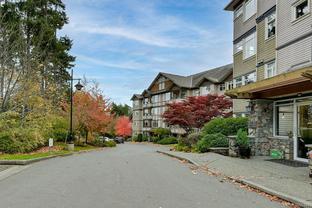 The coveted Ironwood Complex. Enjoy this exclusive, boutique 36-unit building but benefit from low strata fees of a professional & meticulously managed 110-unit strata community. Spacious, private 1 bed plus den residence of a size rarely found today - located on the edge of Gorge Vale Golf Club surrounded in natures vistas. Find 9' ceilings, a good-sized balcony, fireplace, massive bedroom, dual entry ensuite bath & quality finishing's throughout with the added bonus of a guest suite. Brand new quality laminate flooring, updated fixtures & hardware plus fresh paint make this feel new & move-in ready. Secured underground parking, bike/kayak storage & storage locker included. The Ironwood offers ideal, serene golf course living minutes to downtown Victoria, VicWest Waterfront & is beside the Kinsmen Gorge Park & Gorge Waterway Walking Trails. Active living for Commuters, Cyclists, Natures lovers -Large scale living or room to expand a family. Pet Friendly & EV Ready. Open Sat &Sun 2-4pm