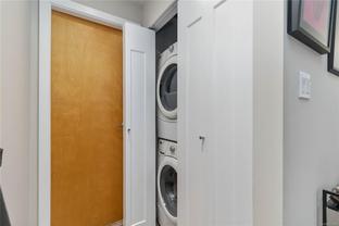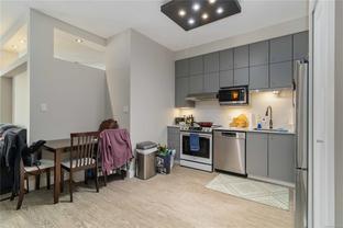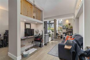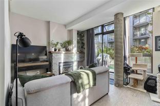 Discover downtown sophistication in the largest unit in the building at Mermaid Wharf! This newly renovated 1-bedroom + den condo blends industrial charm with modern elegance, featuring brand-new stainless steel appliances, a stylish barn door, and fresh paint throughout. Soaring ceilings and oversized south-facing windows fill the space with natural light, while a cozy gas fireplace adds warmth and character. The versatile den with Murphy bed is perfect for guests or a home office. Step outside to your private ground-floor patio and embrace the downtown lifestyle, just steps from the ocean, cafes, and boutique shopping.
