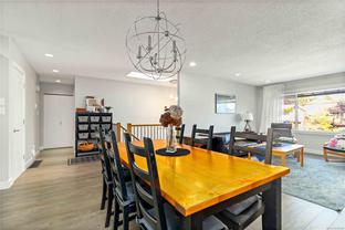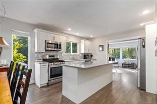 Come discover this versatile renovated home perfectly positioned in the family-friendly Northridge neighbourhood. Backing directly onto the Colquitz River Trail and Copley Park, this property offers everyday access to nature while being minutes from schools, shopping, and amenities. The 5-bed, 3-bath layout includes a bright main level with open living and dining areas, a stylish and well-equipped kitchen with island, and a sunny family room that flows to the private fenced yard. Three bedrooms upstairs include a primary with ensuite, while the lower level provides a versatile rec room, 4th bedroom (no closet), and laundry. A separate 1-bedroom suite with private patio, full bath, and its own laundry offers space for extended family or rental income. With beautifully landscaped gardens, an attached garage, a separate storage area off the backyard, and a huge driveway for RV or boat parking, this home blends modern comfort with outdoor living in an unbeatable location.