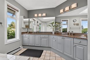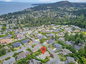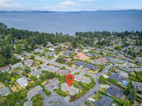 Welcome to 838 Gulfview Place! This bright, almost one-level home sits on a quiet cul-de-sac in one of Victoria’s most desirable neighbourhoods. With 2,127 sq ft of comfortable living, it offers a sun-filled living room with gas fireplace, a dining area large enough to entertain, and an open kitchen–family room perfect for cozy evenings. French doors open to a den or home office. You’ll love the vaulted ceilings, bamboo floors, quartz countertops, and tasteful décor throughout. Just a few steps up leads to two spacious bedrooms, including a lovely primary with walk-in closet, gas fireplace, and 5-pc ensuite. The partially fenced yard is a peaceful retreat with mature plantings, a gazebo, and space for a small veggie garden. Enjoy morning coffee on the deck or unwind under the gazebo at day’s end. With a single garage, carport, and great storage, this home truly has it all - come see for yourself!