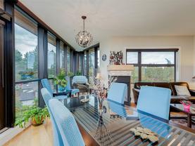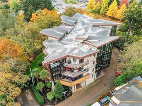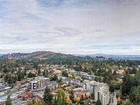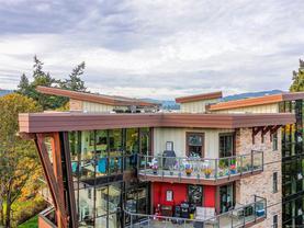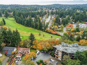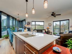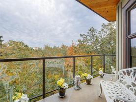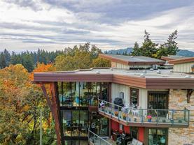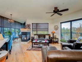 The Fairwynd, aka “The Tree House,” is a luxurious 2012 penthouse condominium in Langford’s premier flagship building, backing onto the 2nd green of Royal Colwood Golf Course. Tucked at the end of a quiet cul-de-sac, this spacious 2BR, 2BA end unit sits among the treetops & showcases stunning views. Featuring floor-to-ceiling windows, a gourmet kitchen w/quartz countertops, stainless appliances, wine fridge, rich cabinetry, & a center island. The open-concept layout offers 9’ ceilings, a 3-sided gas fireplace w/stone surround, gorgeous wood floors, & access to multiple sun-drenched decks. The primary suite includes a WIC, 5-piece luxury ensuite, & a private balcony. The generous second bedroom also enjoys deck access & lovely views. Additional highlights: heated floors, gas hot water on demand, heat pump, BBQ hookup, pet friendly & custom Illusion blinds. Just steps to Goldstream Village, Veterans Memorial Park (w/Saturday market), & all amenities. A rare find, call today!
