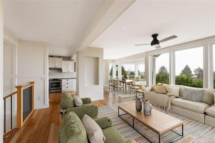 Enjoy coastal living with stunning water views in this inviting 4-bed 3-bath home. The main level, accessed from a private driveway, has 2 beds separated by bright, open living areas ideal for relaxing or entertaining. A light-filled office, laundry, guest bedroom, bath & single garage are off the entry hall. The living room has a cozy electric fireplace & custom built-ins, while the dining space is framed by large bay windows w/ tranquil water view. The kitchen is bright & functional w/ shaker cabinets, quartz & granite counters, SS appliances, dual sinks & walk-in pantry. The primary suite is a retreat w/ WIC & spa-like ensuite w/ soaker tub, double shower & heated floors. The lower level has a family room, 2 beds, bath, gym/game space & storage/workshop. Multiple sunny decks provide spots for dining & enjoying gardens. Updates: new roof, windows & sliding doors, ceiling fans, LED lighting, tile, carpet & a newly repainted exterior. Minutes from the beach, schools & Mattick’s Farm.
