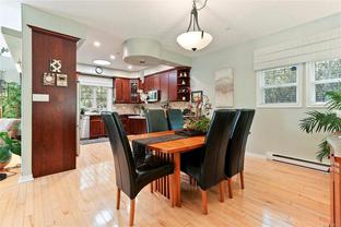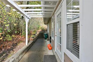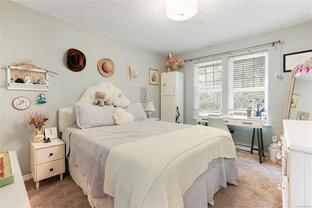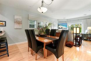 Remarkable townhome living! This 3 bed, 3-bathroom beauty is situated near Thetis Lake Park and backs onto green space! The best of both worlds! The maintenance-free lifestyle of a townhome yet having all the advantages of a single detached home. This creative and intelligent floor plan offers a nice open kitchen, great room, dining rm, and second living room on the main floor, three generously sized bedrooms & two bathrooms upstairs. Lovely primary bedroom w/ensuite and walk and access to private deck! Features: updated bathrooms, hardwood floors, custom blinds, and more. Nice patio area to enjoy outdoor living and a private yard space. Handy full-sized double garage for parking and storage + additional parking stall. A pleasure to show and a wonderful home & community to live in.