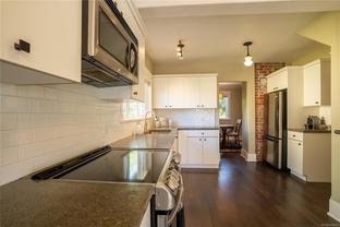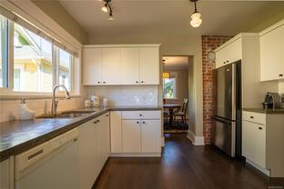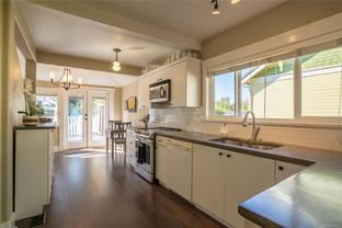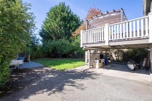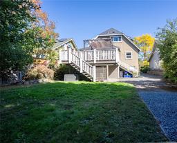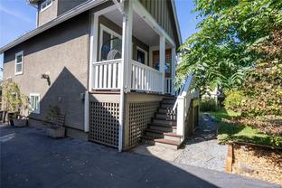 OPEN HOUSE SAT & SUN 12-2pm. Welcome to this fantastic character home nestled on a quiet, tree-lined street in one of Victoria’s most desirable neighbourhoods. Blending timeless charm with thoughtful updates, this residence offers a flexible layout with 3 bedrooms upstairs, a den on the main, and a self-contained suite below—perfect for extended family or added income potential. Step inside to bright, spacious rooms filled with natural light. The updated kitchen features modern cabinetry, stainless steel appliances, and a brick accent wall, flowing seamlessly into the dining area. The inviting living room offers hardwood floors, a fireplace, and built-in shelving. A beautifully updated bathroom includes a quartz vanity and tiled tub surround, while additional bedrooms upstairs provide cozy retreats with unique character details. Double French doors off the kitchen open to an expansive west-facing deck, ideal for entertaining or enjoying the private backyard oasis with mature trees, multiple fruit varieties (apple, Italian plum, fig, cherry/Japanese plum), and a children’s playhouse. Practical updates ensure peace of mind: roof (2023), hot water tank (2025), washer/dryer (2023), and furnace (2018). The property also features 200-amp service, newer windows, ample storage, workshop space, and off-street parking including carport and room for a trailer, RV, or boat. With its combination of classic character, modern comfort, and unbeatable outdoor living, this Blackwood Street gem is truly move-in ready.