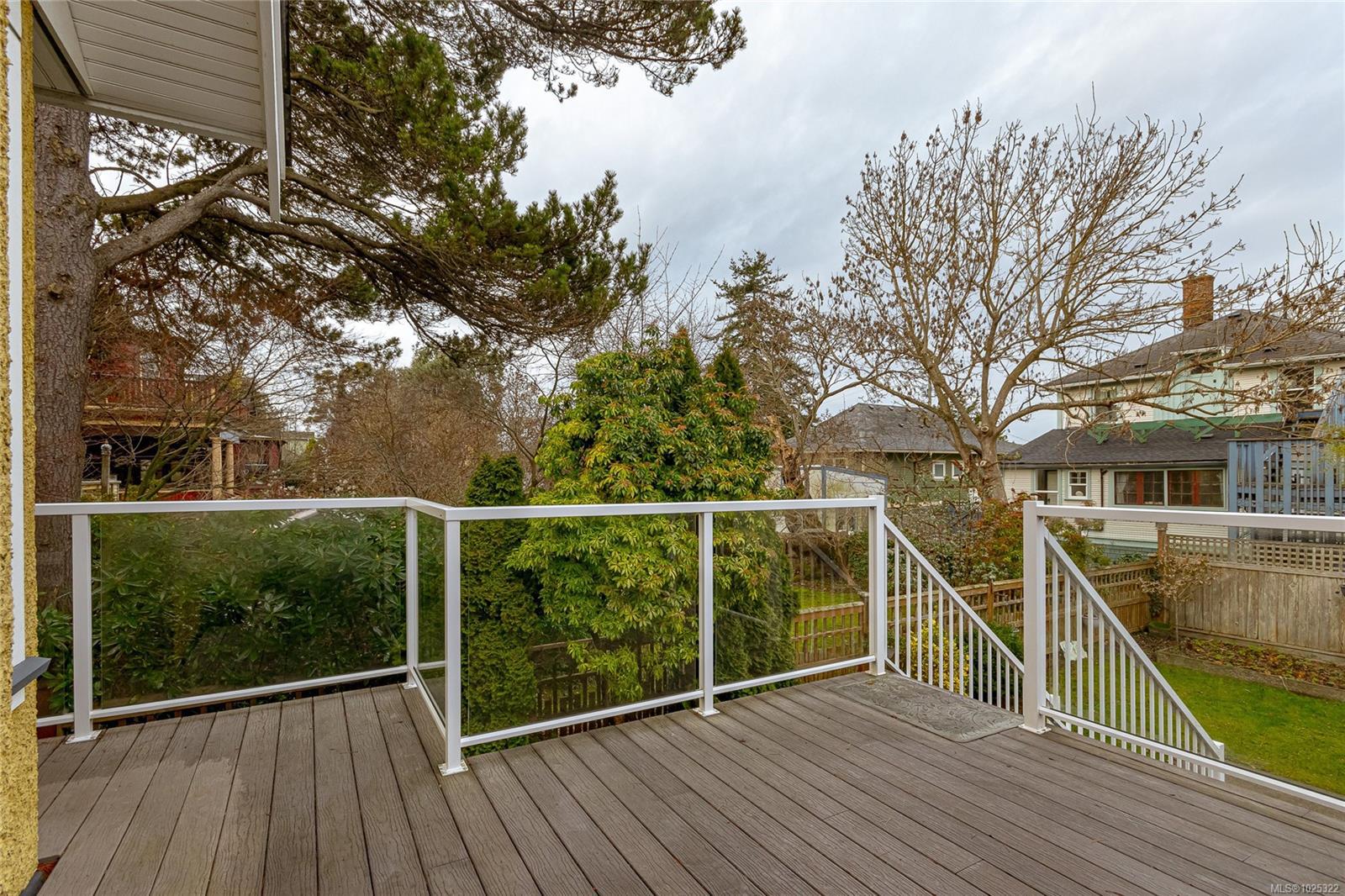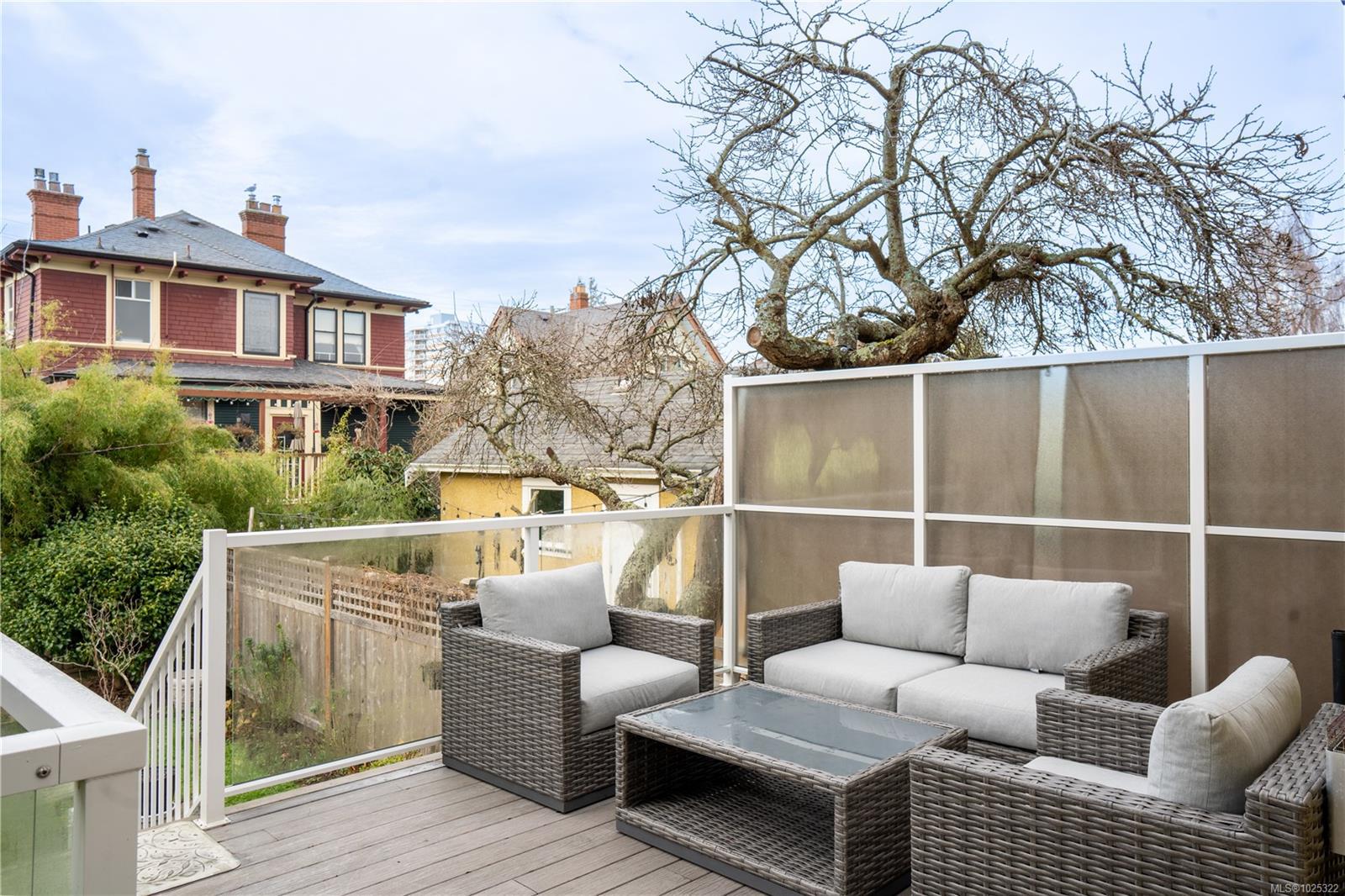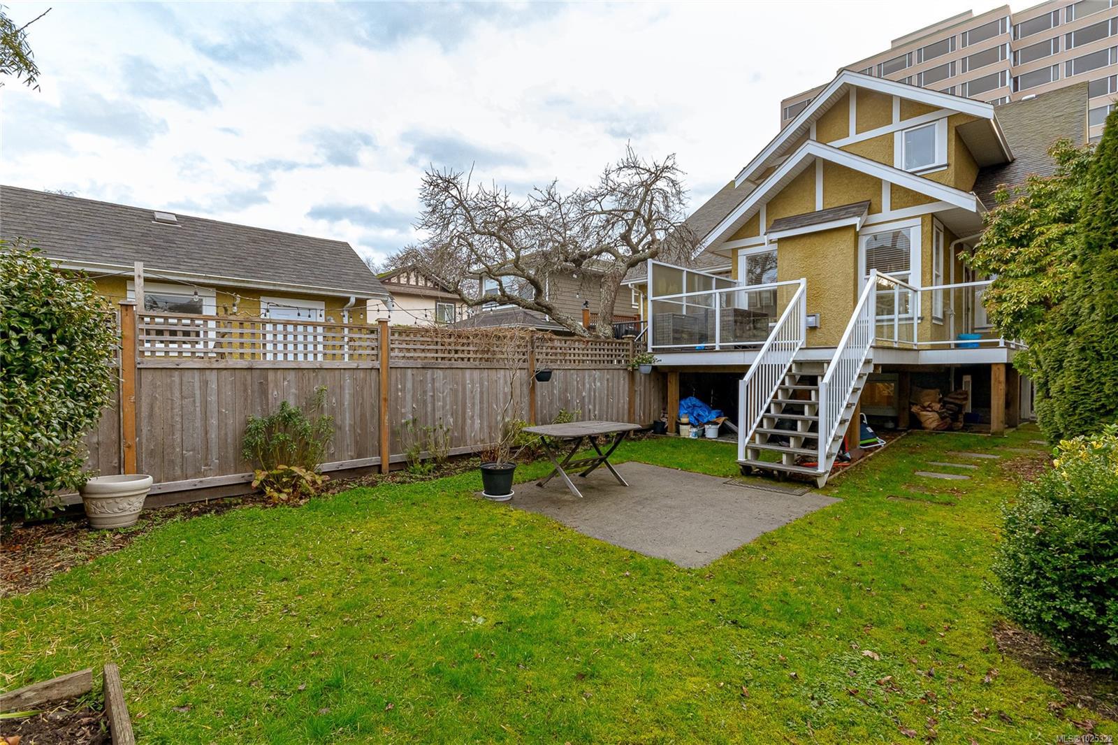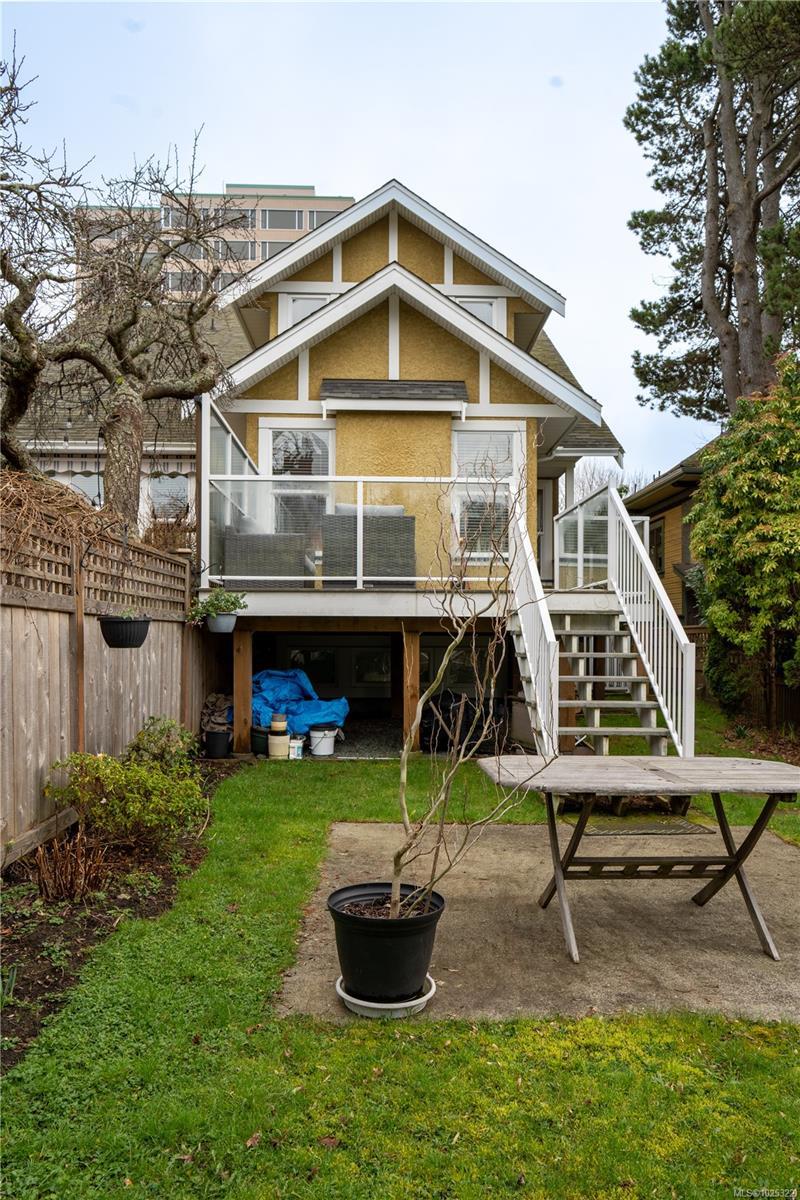 Custom built for the current owner, this James Bay gem offers exceptional value. 2500 s.f. total, three beds, four bathrooms, two kitchens, open plan concept with plenty of windows and doors allowing for natural light. 19 ft vaulted ceiling on main floor which also offers two gas fireplaces. The efficiency and luxury continues with kitchen bar, gas oven/range, hot water heat and dryer. Oak and tile flooring as well as Berber carpeting. Private west facing back yard, fully fenced. East facing patio off the front door, located on a very quiet one block street two hundred yards to the waterfront. Elevated construction and design, very well maintained with recent exterior paint, gutter guards and decks made of composite wood. Brand new microwave on main and new oven in lower level kitchen. Book your showing now and be among the first to view this fantastic home.