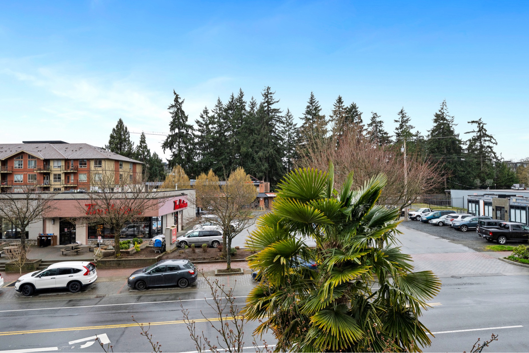 What an opportunity to own a large 2 Bedroom plus Den in the heart of Langford. This home was completely rebuilt in 2022 and it shows. It has over 1000 sq ft of living space - a primary bedroom with a 4 piece ensuite, a second bedroom, a large den (a possible 3rd bedroom?) and a second 4 piece bathroom. The large living room and dining area invites your designing eye and the wrap-around, fully-equipped kitchen with stainless appliances, modern cabinetry, quartz counters (with overhang for bar seating), tiled backsplash and double sink is just waiting for your gastronomic flair. Off the living room is the south facing balcony, offering privacy on those sunny summer days. This home has loads of closet space, insuite laundry and comes with 1 above-ground, secured and covered parking space. It's a well run strata and allows 2 dogs or 2 cats with weight limits and offers bike storage. Central Langford living at its best - Walk Score rates it as a Walking and Cycling Paradise!