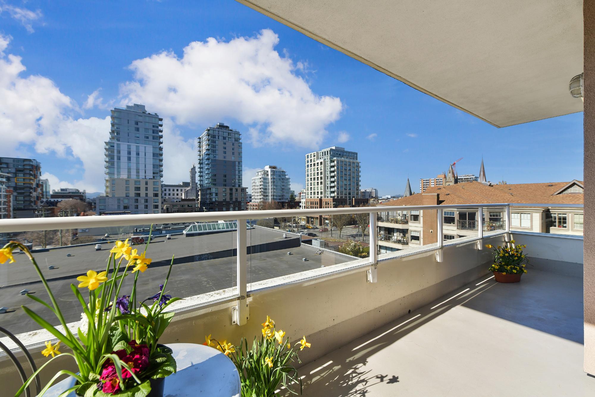 OPEN HOUSE Sat/Sun Apr11/12. One of this country’s most vibrant & diverse restaurant scenes is at your doorstep in this immaculate & spacious downtown Victoria condo. Just steps from Victoria's rich & lively culinary & entertainment district, this sunny, bright condo in The Manhattan provides both easy access & a peaceful oasis from the pulse of the city. Soak in the city view & breathtaking sunsets from a huge 119sf west-facing balcony. The suite is move-in ready with refurbished kitchen cabinet doors/drawers, updated Fridge, Stove, Kitchen sink & Washer. BONUS: Hot water is included in the strata fee! There’s no worries with this impeccably maintained concrete & steel building with a very-strong contingency fund (over $1.5M). The building welcomes 1 pet any size, has a gym, bike lockup, live-in caretaker, guest suite & secure underground parking with a waitlist. Right across from The Market on Yates grocery store, London Drugs & everything you need! Beacon Hill Park & the Inner Harbour are just a 10 min walk away!